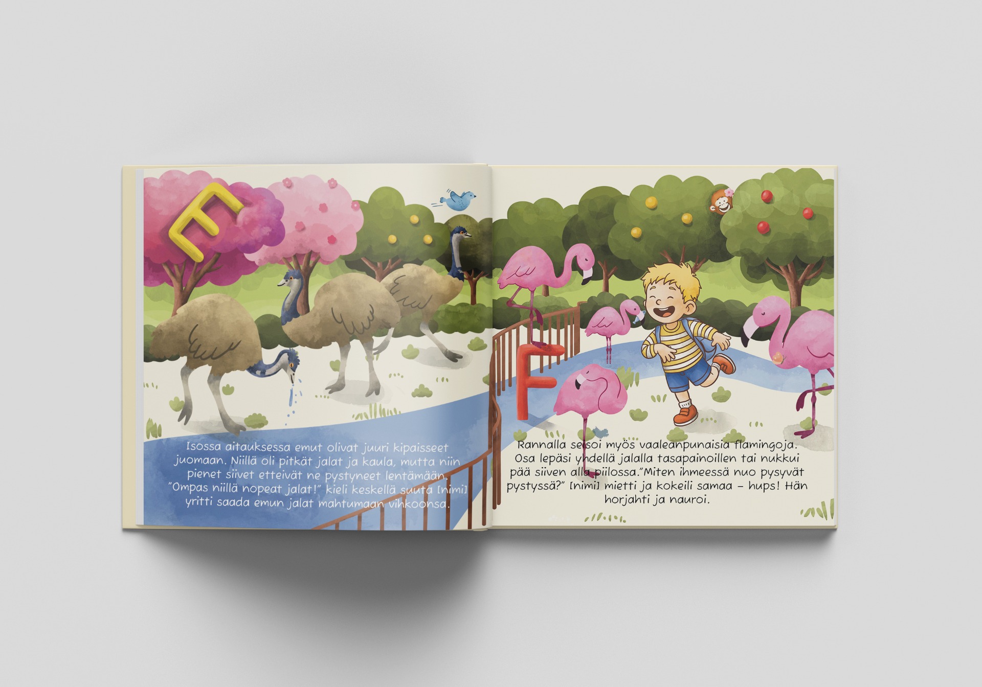 On ilta ja luet kirjaa lapsi sylissäsi. Hän kuulee oman nimensä tarinassa ja reagoi heti. Ei mitenkään isosti, vaan sellaisella pienellä pysähdyksellä. Katsoo, kuuntelee uudestaan ja vähän niin kuin tarkistaa, että kuuliko oikein. Ja sitten se oivaltaa: tämä kirja kertoo minusta.