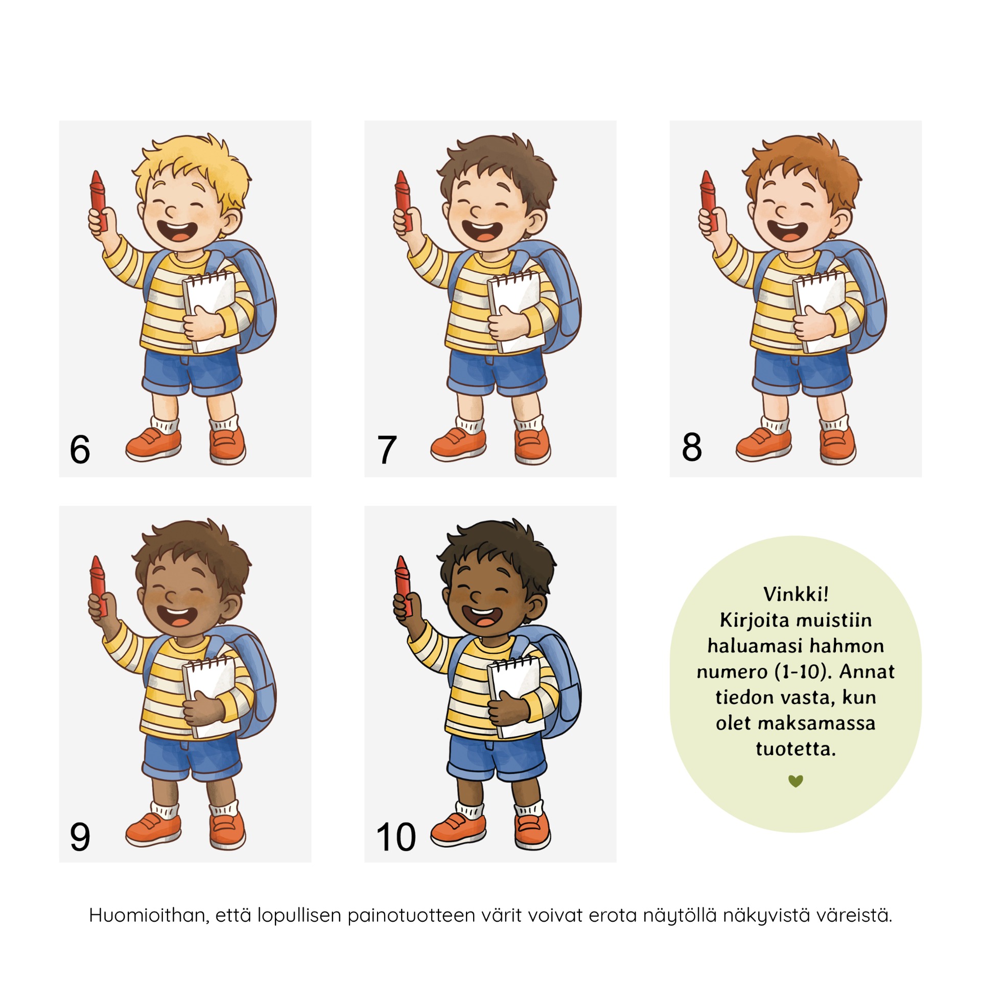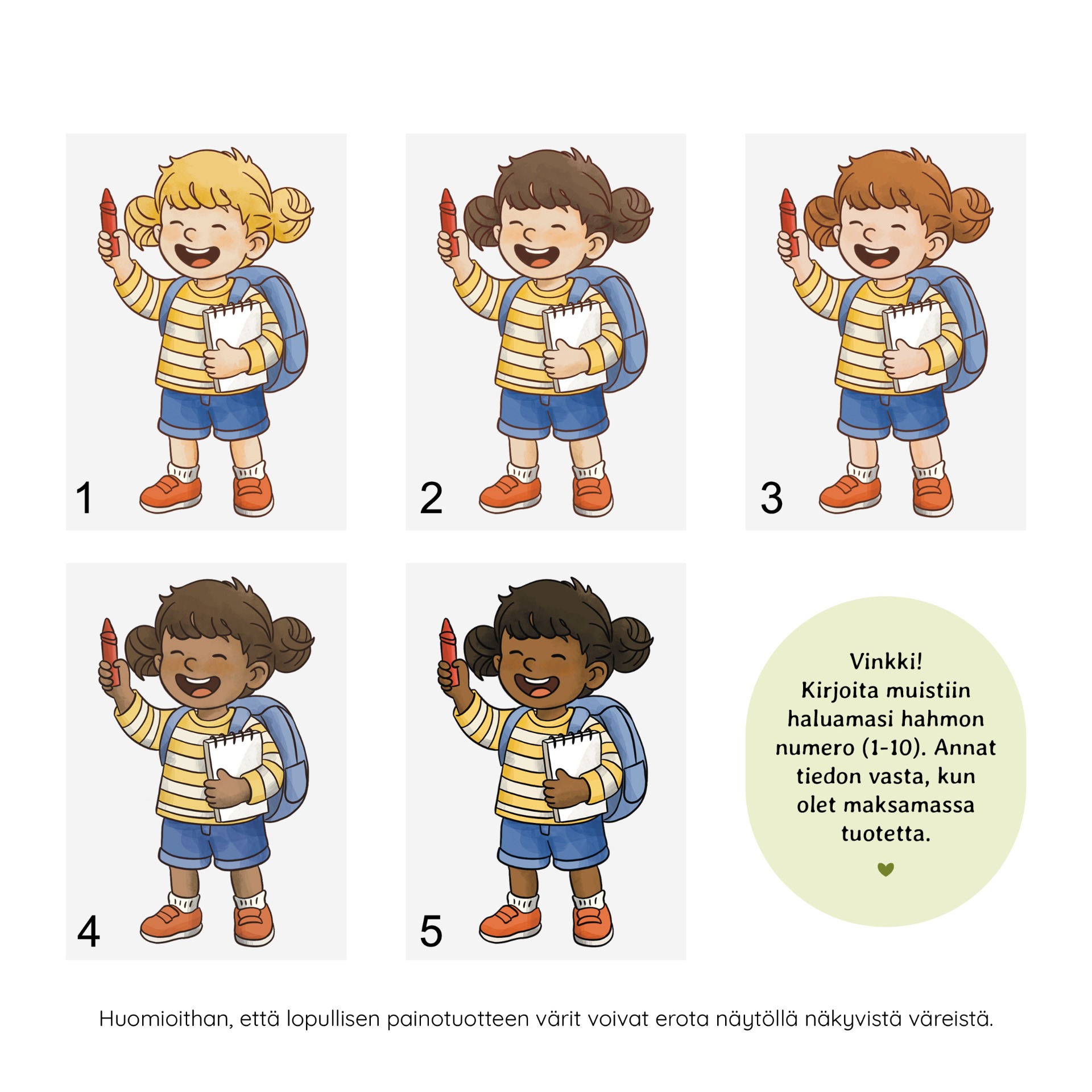 suunnattu personoitava kirja. Valitse päähenkilö 10 vaihtoehdosta ja