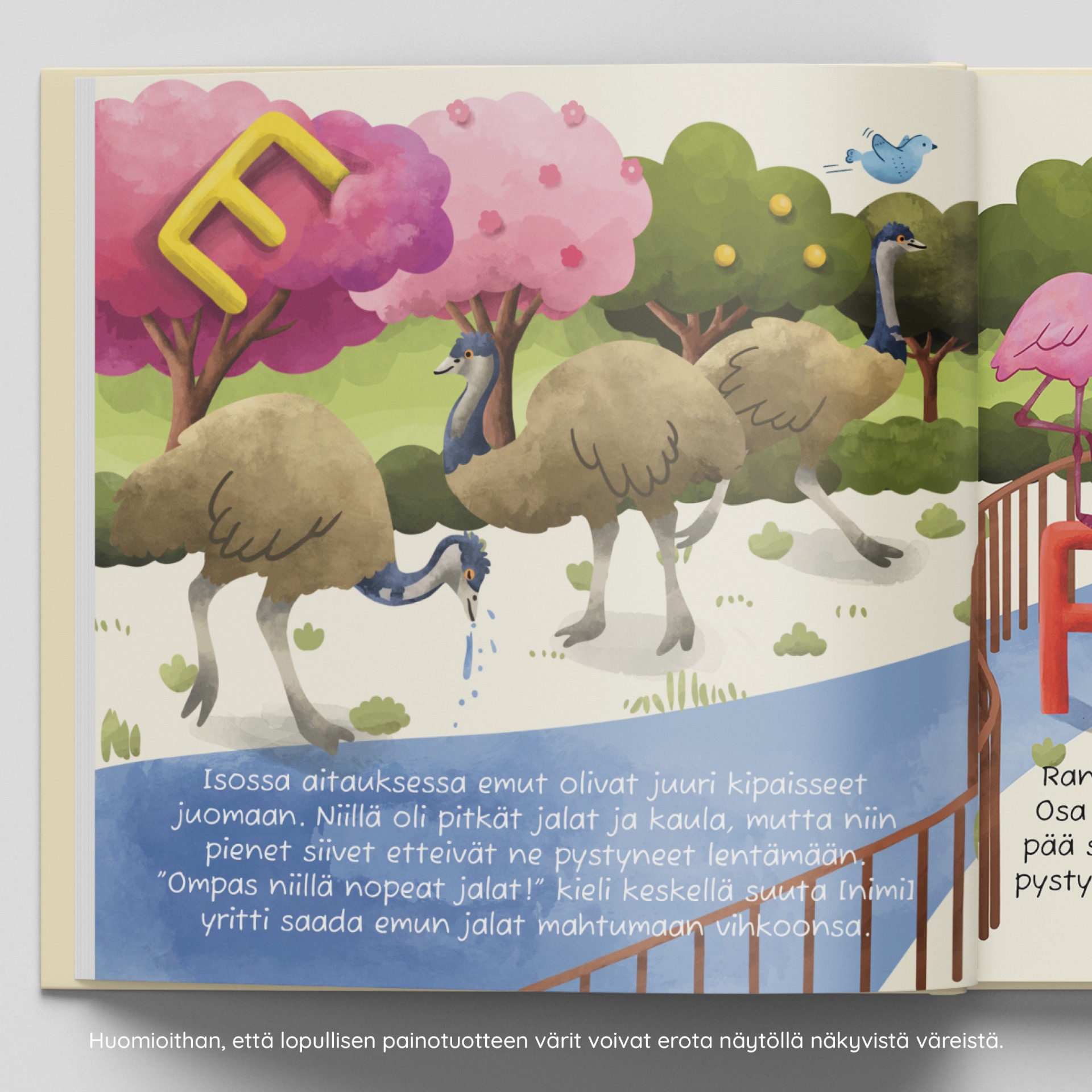 Jokaisella sivulla nimittäin seikkailee uusi eläin aakkosjärjestyksessä;